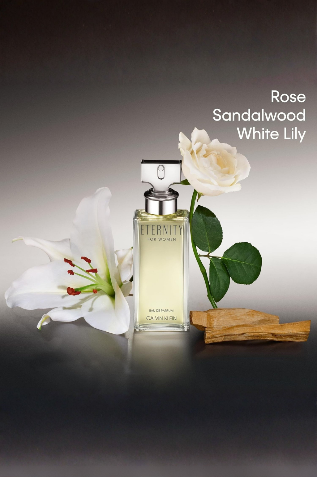 Notas verdes, fresia, salvia, cítricos y mandarina. Clavel, azucena, lirio de los valles (muguete), narciso, caléndula, violeta, rosa y jazmín. Almizcle, heliotropo, sándalo, ámbar y pachulí
